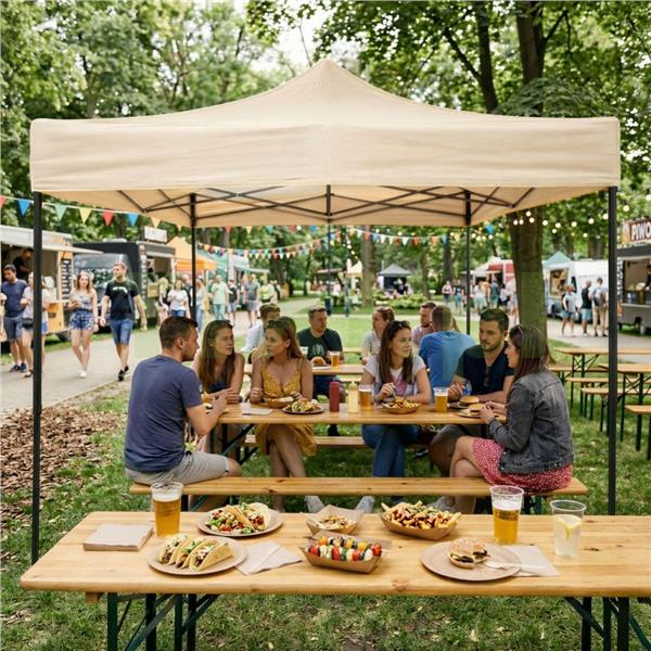 Automatyczny pawilon ogrodowy to praktyczne rozwiązanie dla osób, które potrzebują szybkiego i wygodnego zadaszenia w różnych sytuacjach. Sprawdzi się w ogrodzie, przy lokalu usługowym, podczas rodzinnych uroczystości, targów, festynów i innych wydarzeń plenerowych. To model stworzony z myślą o funkcjonalności, mobilności i łatwej organizacji miejsca w plenerze. Dzięki dołączonej torbie transportowej namiot można wygodnie przewozić i przechowywać, co zwiększa jego użyteczność zarówno w zastosowaniach prywatnych, jak i komercyjnych. To uniwersalny wybór wszędzie tam, gdzie liczy się szybkie przygotowanie osłoniętej przestrzeni.