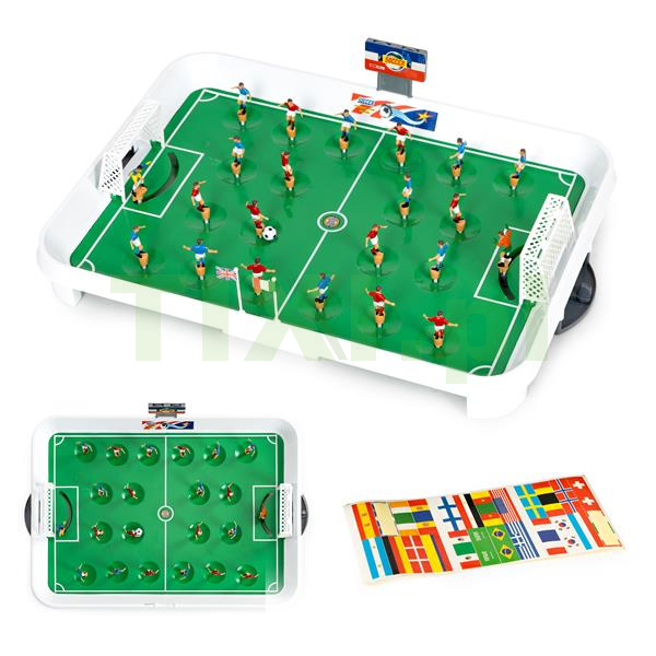 Aby dodać elementu autentyzmu, zestaw zawiera również naklejki z flagami różnych państw, umożliwiając dzieciom tworzenie swoich własnych międzynarodowych turniejów piłkarskich.