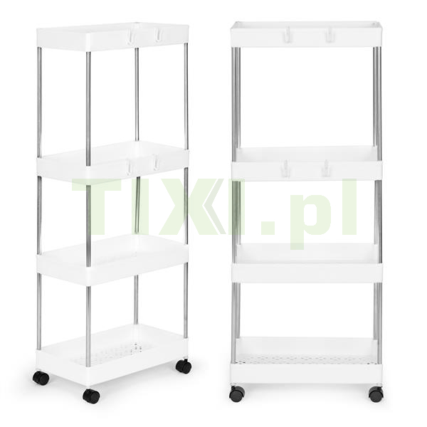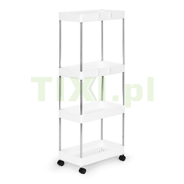 Dzięki 4 półkom regał oferuje dużą przestrzeń do przechowywania różnorodnych przedmiotów łazienkowych, od kosmetyków po ręczniki czy artykuły higieniczne.
