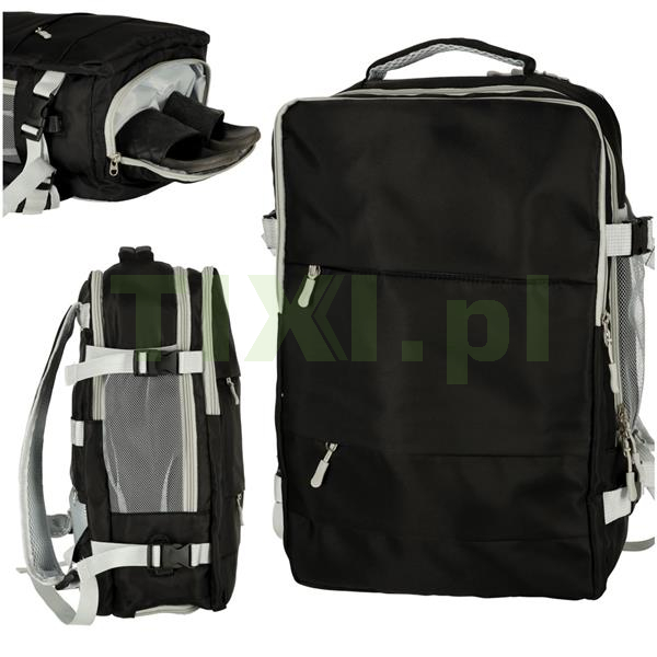 Duży placek podróżny – idealny zarówno do codziennego użytku, jak i na podróż! Plecaka można używać jako bagażu podręcznego w większości linii lotniczych. Zewnętrzne pasy kompresyjne umożliwiają ściśnięcie spakowanych rzeczy. Posiada wiele kieszeni, w tym specjalną kieszeń buty, dzięki czemu bez problemu pomieścisz wszystkie niezbędne rzeczy. Posiada port USB i kabel USB dla łatwego ładowania telefonu poprzez powebank.