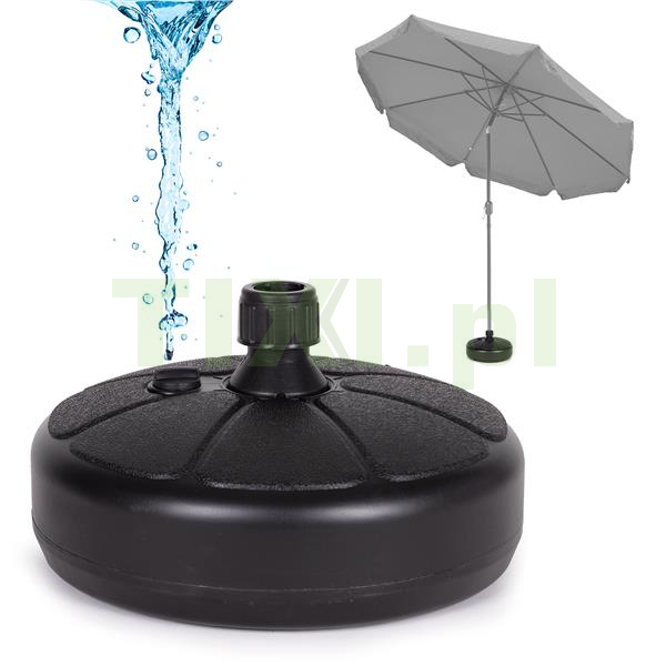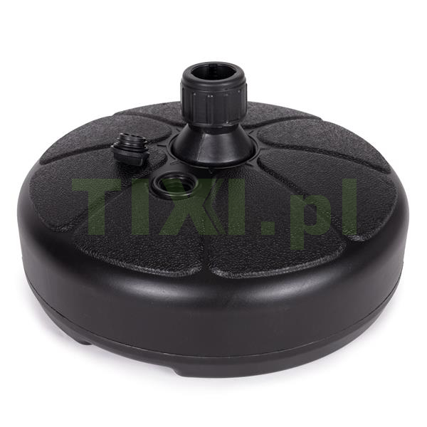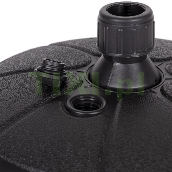 W górnej części podstawy znajduje się odkręcany korek, po jego wykręceniu należy napełnić podstawę wodą. Obciążenie będzie ważyć wtedy ok. 13 kg, co zapewni idealną stabilizację parasola.