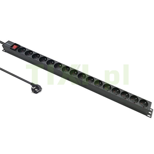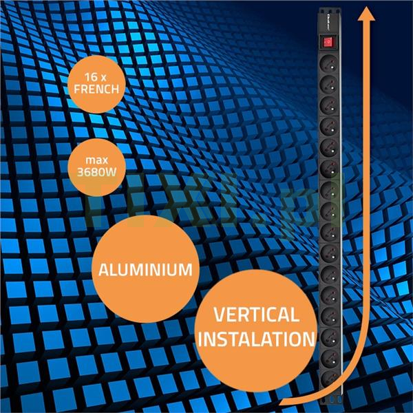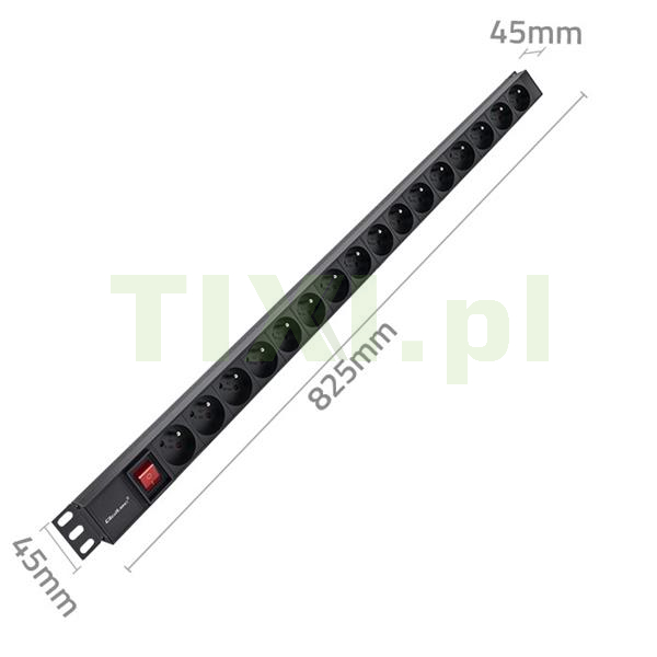 Wybierając odpowiednią listwę PDU, warto zwrócić uwagę na funkcjonalność, jakość materiałów, z których jest ona wykonana, montaż oraz oferowane udogodnienia jak np. podświetlany przełącznik, który umożliwia szybką lokalizację źródła zasilania. Nasz produkt idealnie pasuje do szaf rack np. 19". Listwa posiada 16 gniazd typu FRENCH. Obudowa wykonana z wysokiej jakości aluminium w kolorze czarnym , z kolei gniazda z trwałego tworzywa ABS. Dzięki czemu listwa jest odporna na uszkodzenia mechaniczne i wzmożoną eksploatację. Każda listwa posiada z obu stron specjalne uchwyty, za pomocą których można je montować. Gniazda są ułożone pod kątem 35 stopni w stosunku do pionowej powierzchni szafy serwerowej, dzięki temu można łatwiej zarządzać okablowaniem oraz zwiększyć przestrzeń w szafie serwerowej.