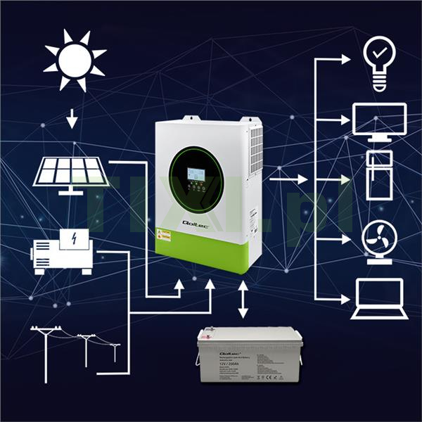 Strona główna » Fotowoltaika » Qoltec Hybrydowy inwerter solarny Off-Grid 11000W | 160A | 48V | MPPT | BMS | AGM GEL LiFePO4 | Sinus | opcja Wi-Fi | Power Factor 1.0