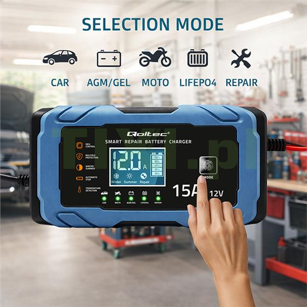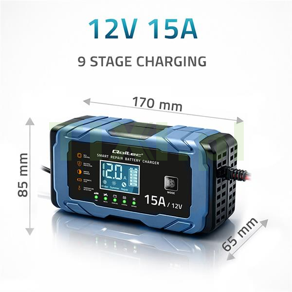 Inteligentna ładowarka marki Qoltec poprzez 9-stopniowy automatyczny tryb ładowania ze zintegrowanym etapem odsiarczania i konserwacji zapewnia wyjątkową ochronę akumulatora oraz pozwala uzyskać najlepszą wydajność.