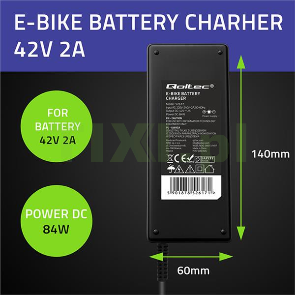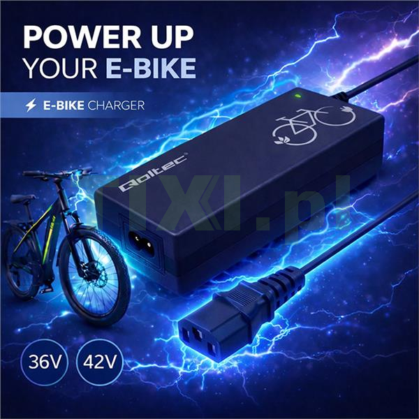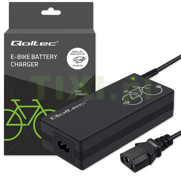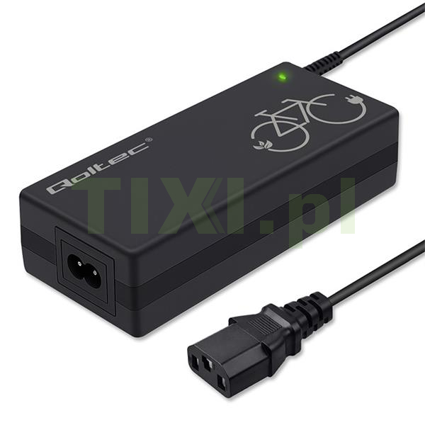 Ładowarka mobilna marki Qoltec o napięciu 42V i natężeniu ładowania 2A do E-bike z gniazdem C14-IEC-3P oraz ogólnej mocy ładowania 84W dedykowana do akumulatorów litowo-jonowych 36V, pozwala na naładowanie baterii z dowolnego gniazdka elektrycznego 230V. To wygodne i funkcjonalne rozwiązanie z zaawansowaną elektroniką, chroni twoją baterię podczas procesu ładowania.