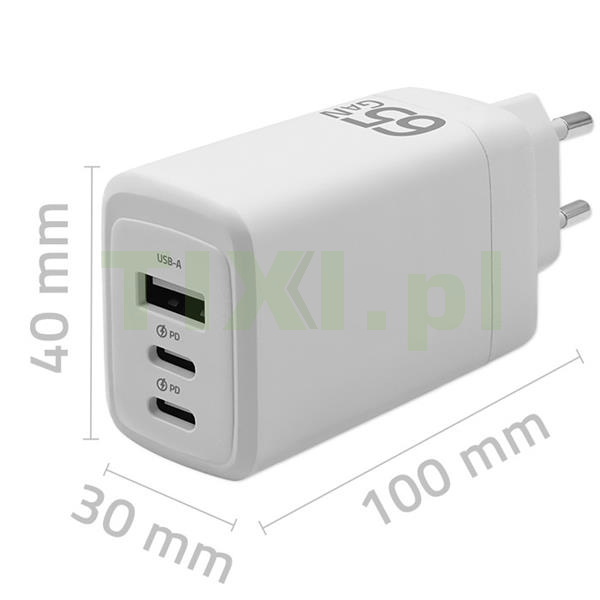 Moc maksymalna: USB-C1/C2 : 65W USB-A : 60W USB-C1 + USB-C2 : 45W + 20W USB-C2 + USB-A : 18W USB-C1 + USB-C2 + USB-A : 45W + 18W