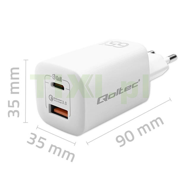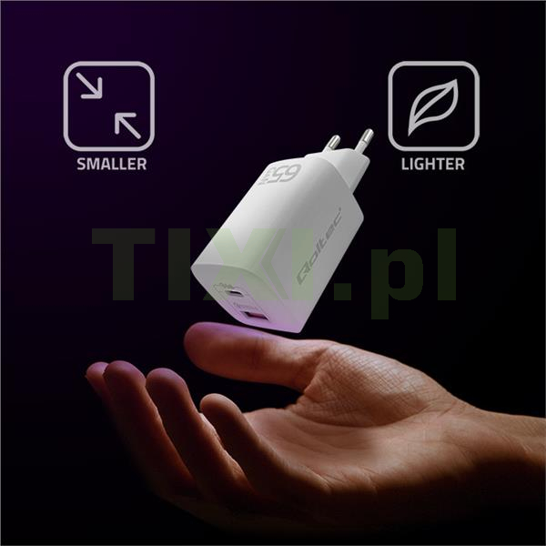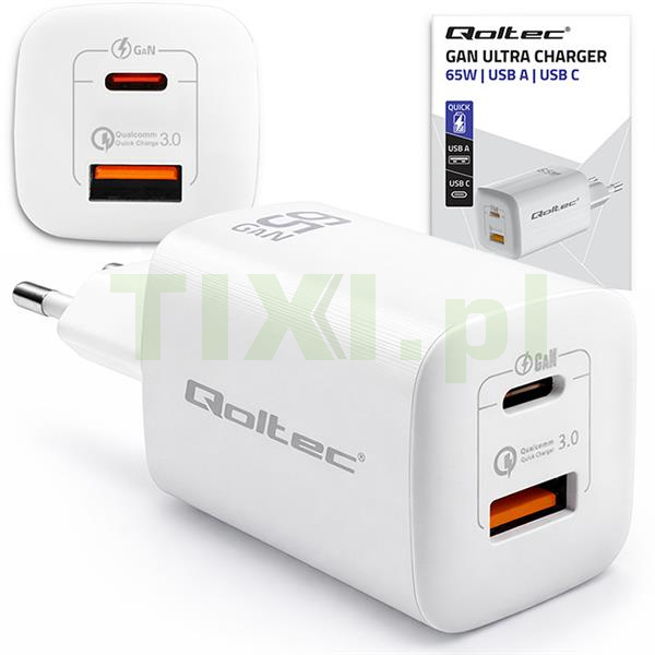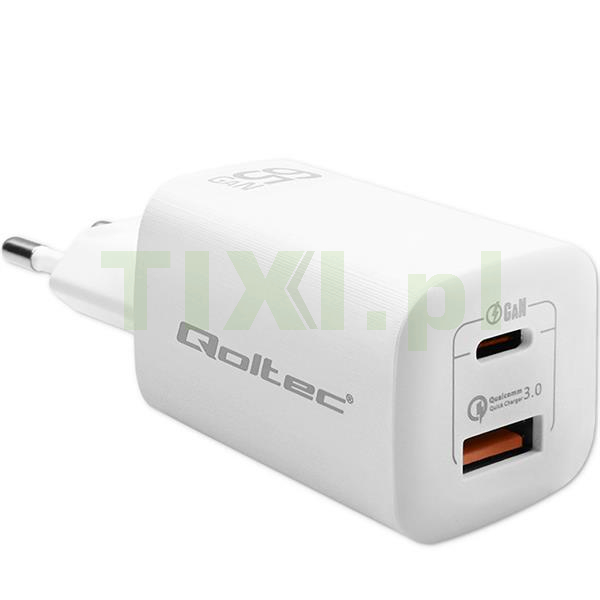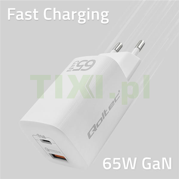 Ładowarka marki Qoltec została wyposażona w najnowocześniejszą technologię ładowania GaN polegającą na zastosowaniu nowego materiału półprzewodnikowego azotku galu. W zależności od rodzaju ładowanego urządzenia ładowarka dobiera odpowiednie napięcie i natężenie w zależności od parametrów baterii, chroniąc ją przed przegrzaniem.