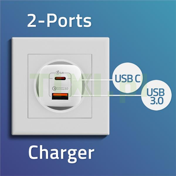 Gniazdo: 1 x USB-C PD | 1 x USB QC 3.0