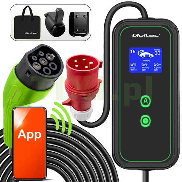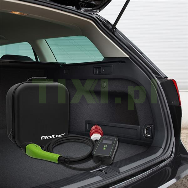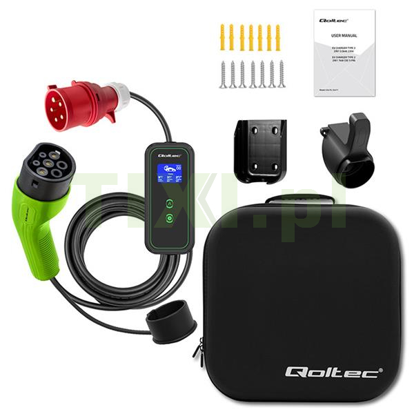 Ładowarka posiada złącze typu 2, które jest obecnie oficjalnym standardem Unii Europejskiej i ładuje auta elektryczne wyposażone w odpowiednie gniazdo ładowania. Złącze typu 2 to 7 styków, z których 3 styki lub 5 przeznaczone są do ładowania, a 2 do komunikacji między stacją a samochodem. Kompatybilne z większością samochodów elektrycznych sprzedawanych w Europie. Ładowarka marki Qoltec obsługuje cztery tryby natężenia prądu 16A, 13A, 10A i 8A. Warto dodać, że złącze typu 2 jest przeznaczone dla pojazdów elektrycznych o mocy ładowania większej niż 3kW.