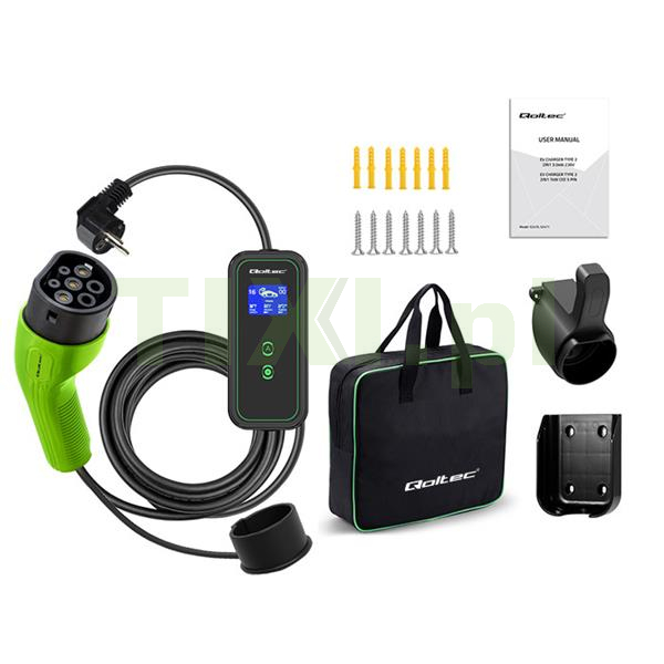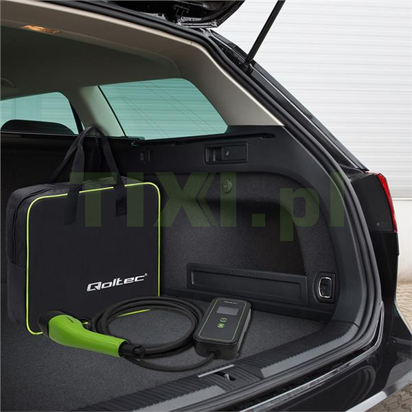 Ładowarka posiada złącze typu 2, które jest obecnie oficjalnym standardem Unii Europejskiej i ładuje auta elektryczne wyposażone w odpowiednie gniazdo ładowania. Złącze typu 2 to 7 styków, z których 3 styki lub 5 przeznaczone są do ładowania, a 2 do komunikacji między stacją a samochodem. Kompatybilne z większością samochodów elektrycznych sprzedawanych w Europie. Ładowarka marki Qoltec obsługuje cztery tryby natężenia prądu 8A, 10A, 13A i 16A. Warto dodać, że złącze typu 2 jest przeznaczone dla pojazdów elektrycznych o mocy ładowania większej niż 3kW.
