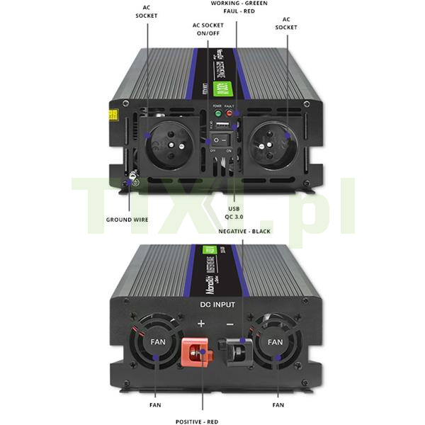 Informacje dodatkowe: Funkcja miękkiego startu Zalecamy wybór baterii powyżej 30AH W zestawie dodatkowe bezpieczniki
