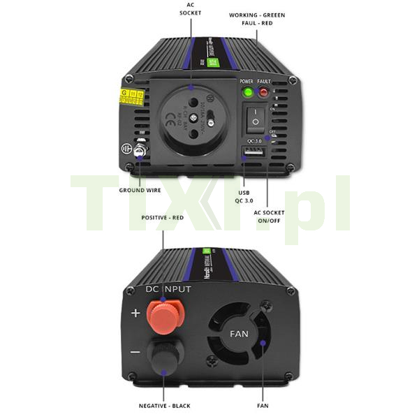 Informacje dodatkowe: Funkcja miękkiego startu Zalecamy wybór baterii powyżej 30AH W zestawie dodatkowe bezpieczniki