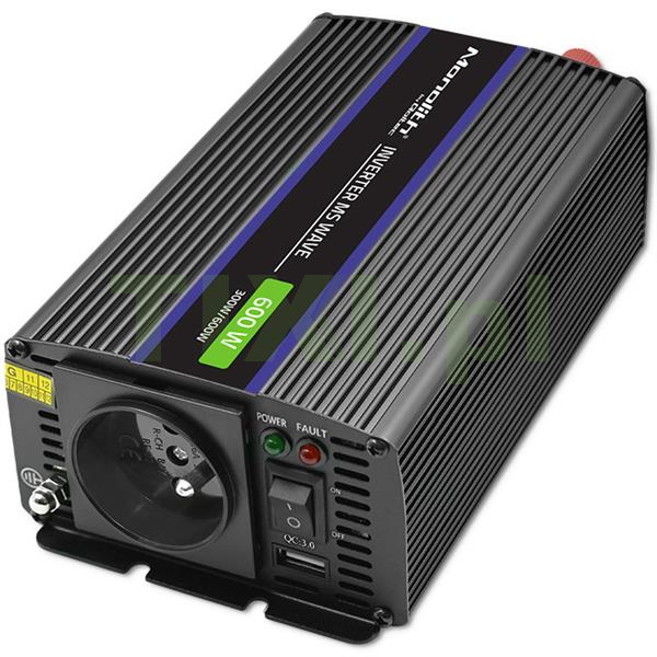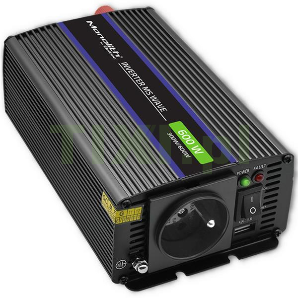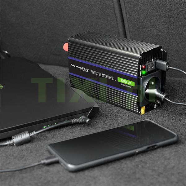 Urządzenia, które nie wymagają czystej sinusoidy takie jak zasilacze LED, oświetlenie LED, komputer, laptop, małe AGD bez problemu będą pracować z przetwornicą z modyfikowanym sinusem, wytwarza na wyjściu sinusoidę o napięciu przemiennym o przebiegu aproksymowanym, której wartość skuteczna jest taka sama, jak wartość przebiegu sinusoidalnego, jaki występuje w sieci energetycznej. Ten typ przetwornicy to przede wszystkim mniejsza awaryjność i prosta konstrukcja.