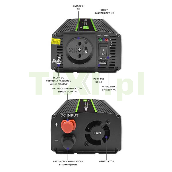 Informacje dodatkowe: Nie zakrywaj otworów wentylacyjnych urządzenia Pamiętaj o prawidłowym podłączeniu przewodów i polaryzacji napięcia zasilającego !