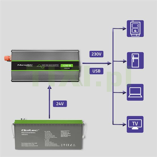 Przetwornica marki Qoltec to czysty sinus, wytwarza prąd taki sam jak w gniazdku 230V, zapewniając bezpieczeństwo dla wszystkich podłączonych urządzeń . Świetnie sprawdzi się zarówno podczas przerw w dostawach prądu , jak i podczas podróży, gdy nie mamy dostępu do gniazdka.