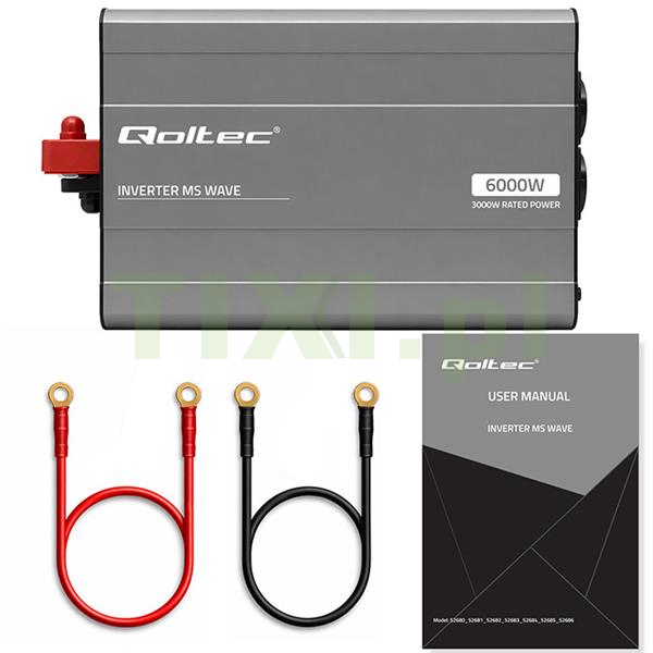 Zawartość zestawu: 1 x Przetwornica napięć 2 x Przewód przyłączeniowy akumulatora 1 x Karta gwarancyjna 1 x Instrukcja obsługi