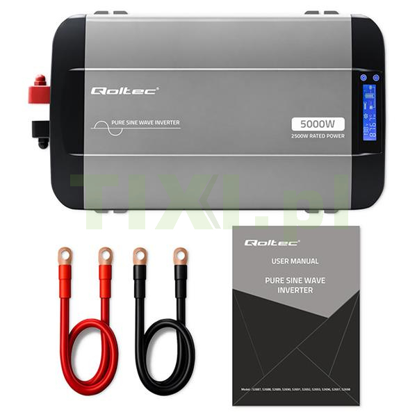 Zawartość zestawu: 1 x Przetwornica napięć 2 x Przewód przyłączeniowy akumulatora 1 x Karta gwarancyjna 1 x Instrukcja obsługi