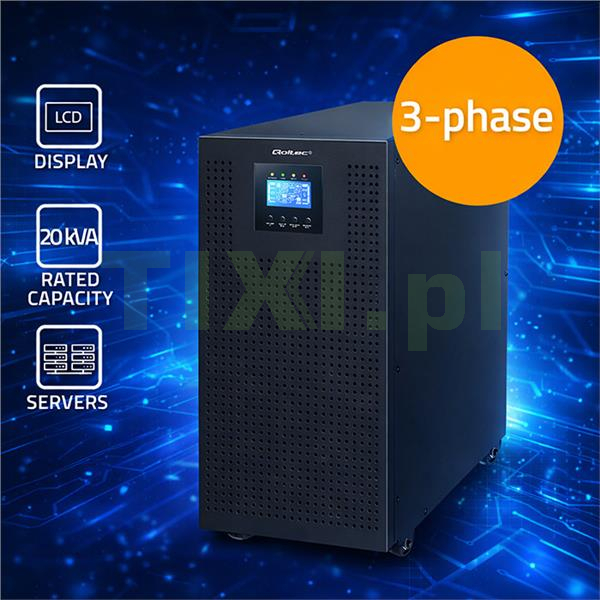 Zasilacz UPS 3-fazowy 20kVA marki Qoltec to zaawansowane urządzenie, które zapewnia bezpieczne, nieprzerwane zasilanie i pełną ochronę dla Twojego sprzętu. Cechuje go: :