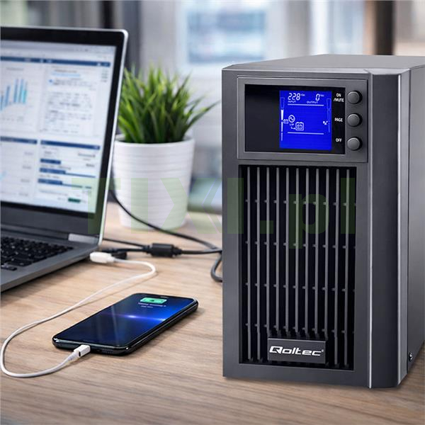 Zasilacze UPS online marki Qoltec to stabilna pozbawiona zakłóceń czysta energia o sinusoidalnym kształcie. To pełna ochrona twoich urządzeń, dzięki podwójnej konwersji, która najpierw przekształca prąd przemienny zasilania sieciowego na prąd stały, a następnie na prąd przemienny, co zapewnia najwyższy poziom jakości zasilania i zabezpiecza przez potencjalnymi zakłóceniami w sieci takimi jak spadki napięcia, zaniki energii, przepięcia i awarie.