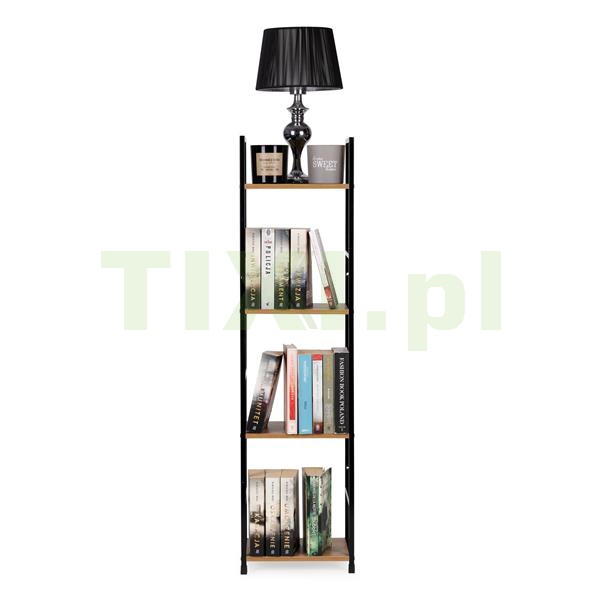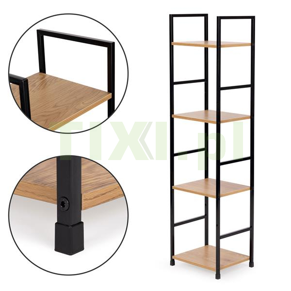 Półki zostały wykonane z płyty MDF, którą pokryto okleiną imitującą drewno. Ich wymiary 23,5x29 cm, pozwolą pomieścić wszystko to, co lubisz mieć pod ręką. Odległość między półkami to 30,5 cm.