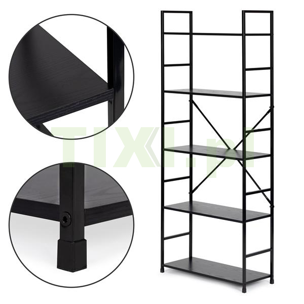 Stelaż regału wykonano z metalu malowanego proszkowo, a jego nogi zakończono specjalnymi stopkami chroniącymi podłogę przed jej zarysowaniem.