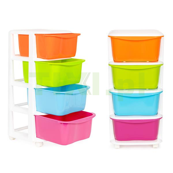 Regał składa się z czterech kolorowych szuflad ze specjalnie wyprofilowanym uchwytem na froncie, co ułatwi Ci ich wsuwanie i wysuwanie.
