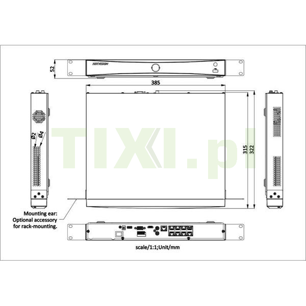 | Wyjście VGA | 1 kanał: 1920×1080/60 Hz, 1280×1024/60 Hz, 1280×720/60 Hz |