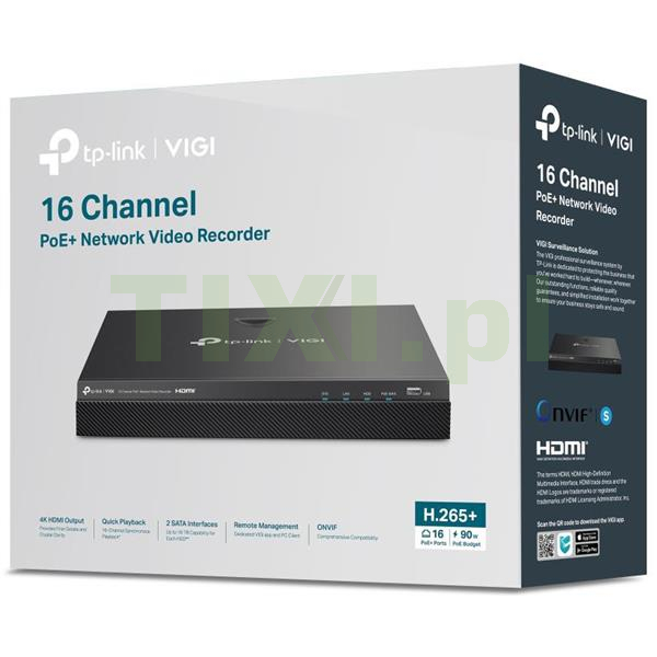 | Model | TP-Link VIGI NVR2016H-16P 16-kanałowy rejestrator sieciowy z PoE+ |
