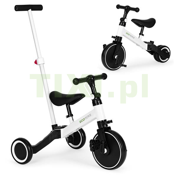 Możliwość przerobienia rowerka biegowego w tradycyjny, napędzany pedałami sprawia, że dziecko może zacząć bezpieczną naukę jazdy na tego typu rowerkach. Miękkie siodełko oraz antypoślizgowe uchwyty zapewnią komfortową zabawę na wiele godzin. Kółka pojazdu zostały wykonane z tworzywa EVA, dzięki któremu są odporne na przebicia. To sprawia, że z rowerka można korzystać zarówno w domu, jak i na spacerach.