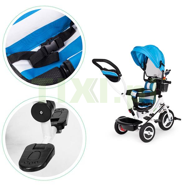 W zależności od wieku i samodzielności dziecka, masz możliwość zdjęcia daszku, barierek i rączki do prowadzenia rowerka. Jeśli Twoja pociecha jest już samodzielna, możesz zdjąć dodatkowe zabezpieczenia.