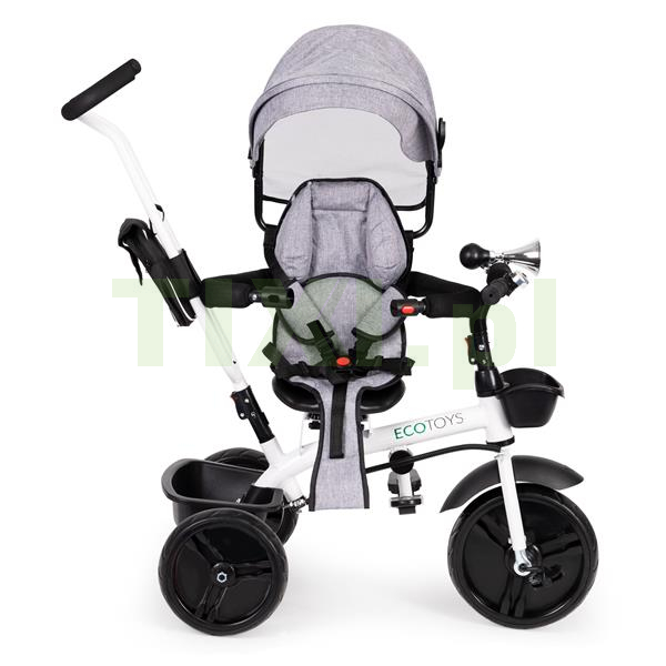 Rowerek ECOTOYS łączy w sobie wiele praktycznych rozwiązań, które zapewnią twojemu dziecku wygodną i bezpieczną zabawę. Rowerek posiada miękkie i komfortowe oparcie, dzięki któremu maluch będzie siedział wygodnie, a pasy i barierki zabezpieczą go przed wypadnięciem z siedziska. Składany daszek ochroni przed deszczem i słońcem. Specjalnie wyprofilowana rama oraz obrotowe siedzisko ułatwią wsiadanie najmłodszym dzieciom.