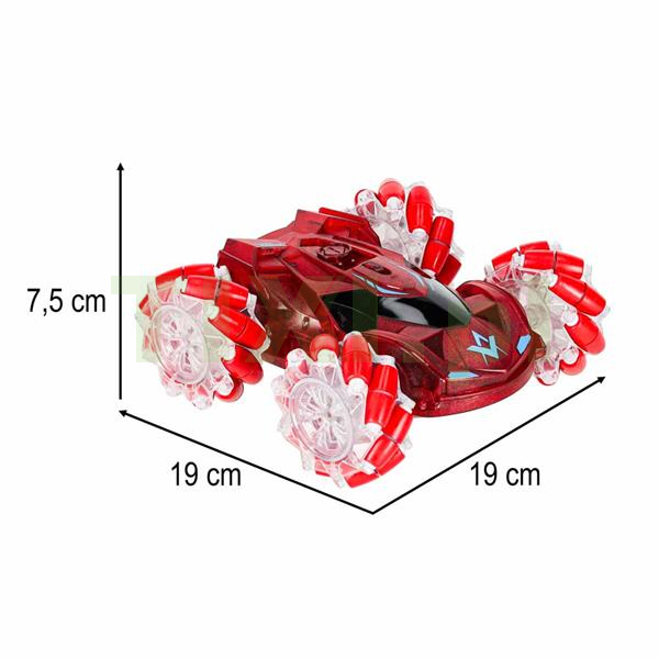 Zdalnie sterowany pojazd, który świeci i wypuszcza dym zrobi ogromne wrażenie na wielu fanach modeli RC. Praktyczny kontroler pozwala na płynne i zręczne prowadzenie pojazdu. Auto jedzie w przód, w tył i na boki – można nim swobodnie driftować oraz obrócić go wokół własnej osi. Sprawnie porusza się po różnych nawierzchniach – unikalna konstrukcja kół pozwala jeździć po kamienistej lub piaszczystej drodze.