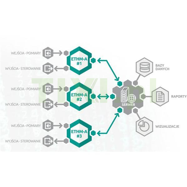 ETHM-A to uniwersalny moduł monitorujący umożliwiający przesyłanie informacji przez sieć Ethernet.. Dzięki temu, że moduł może pracować w sieci lokalnej, nie ma konieczności przekierowywania przesyłanych danych przez Internet czy tworzenia bazy danych. Wszystko pozostaje w sieci lokalnej, która chroniona jest przez zaporę sieciową (firewall). ETHM-A nie generuje dodatkowych kosztów związanych z kartą SIM czy abonamentem telefonicznym tak jak w przypadku innych modułów komunikacyjnych GSM.