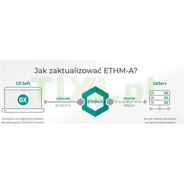 Programowanie i konfiguracja odbywa się na komputerze z zainstalowanym programem GX Soft. Połączenie modułu z programem odbywa się lokalnie (RS-232 (TTL)) lub zdalnie (Ethernet). Oprogramowanie sprzętowe ETHM-A może być aktualizowane zdalnie dzięki współpracy z programem UpServ.