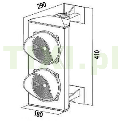 Semafor o dwukolorowym układzie świateł (czerwone i zielone), przygotowany do montażu naściennego, wyposażony w 2 uchwyty mocujące i dławnicę kablową. Obudowa wykonana z malowanego aluminium i wysokoudarowego ABS. Idealny do kontroli dostępu, montażu przy bramach automatycznych, czy szlabanach.