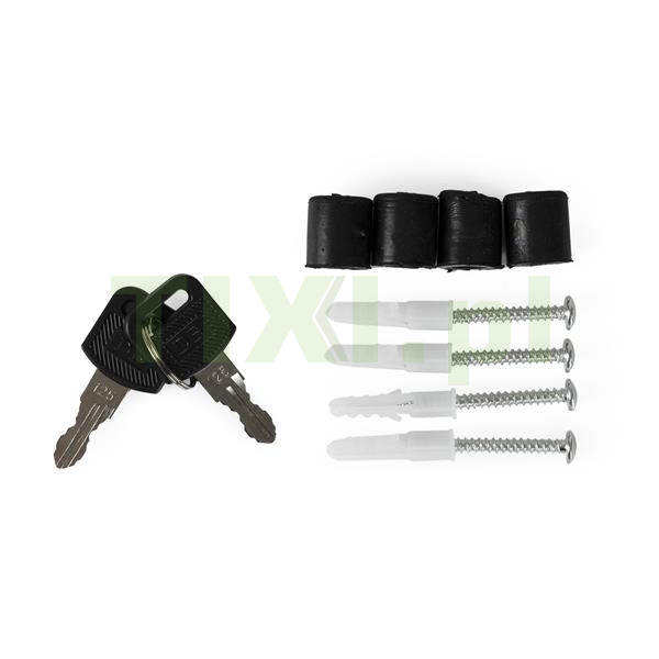 Razem ze skrzynką otrzymasz zestaw montażowy - 4 kołki i dystanse, dzięki temu możesz przystąpić do założenia skrzynki zaraz po rozpakowaniu. W zestawie znajdują się dwa klucze do otwierania skrzynki.