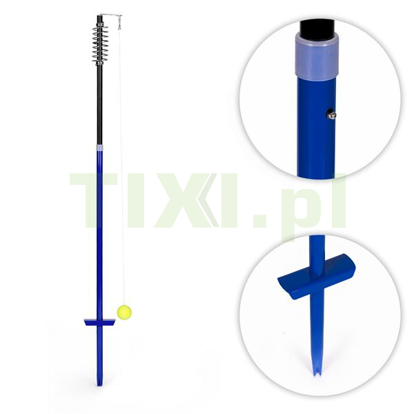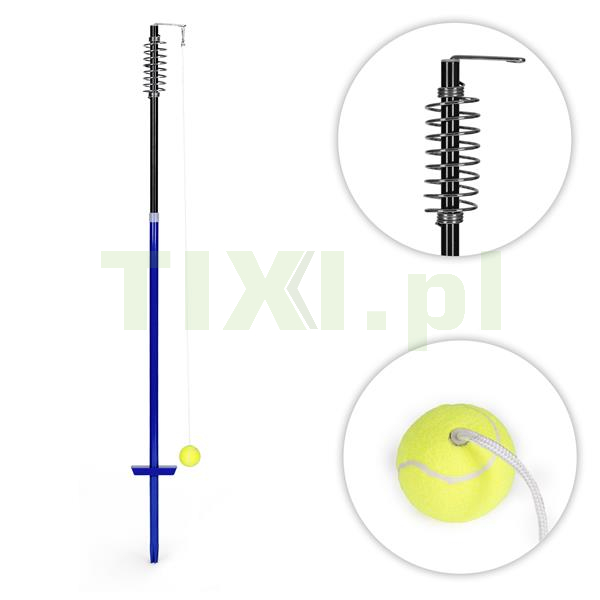 Sprężyna pochłania część energii uderzenia rakietką, ograniczając gwałtowne szarpnięcia linki i zapewniając płynniejszy ruch piłki. Dzięki temu odbicia są bardziej kontrolowane, a zestaw lepiej reaguje na siłę uderzeń. Rozwiązanie to zwiększa komfort gry oraz wspiera rozwój koordynacji ruchowej i precyzji.