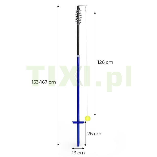 Słupek posiada możliwość regulacji wysokości w trzech poziomach: 153, 160 oraz 167 cm. Pozwala to dopasować zestaw do wzrostu użytkownika oraz rodzaju treningu, dzięki czemu mogą z niego wygodnie korzystać zarówno dzieci, jak i dorośli.