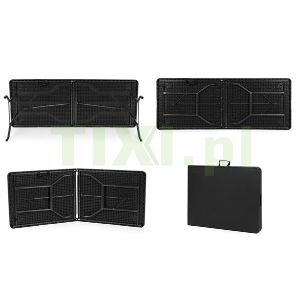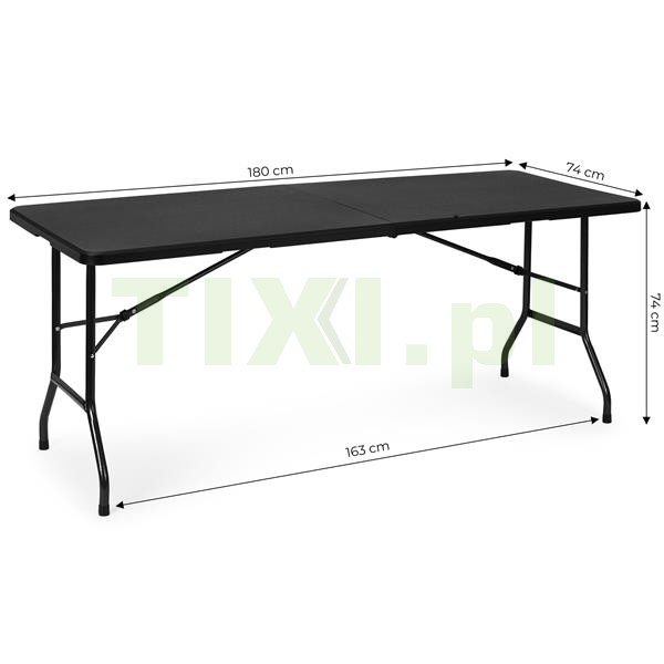 Jego obszerny blat o wymiarach 180x74 cm zapewnia komfort użytkowania, dając wystarczająco dużo miejsca na zastawę, dekoracje czy sprzęt gastronomiczny. Wytrzymała stalowa konstrukcja gwarantuje stabilność nawet przy dużym obciążeniu, a blokada zabezpieczająca chroni przed przypadkowym złożeniem.