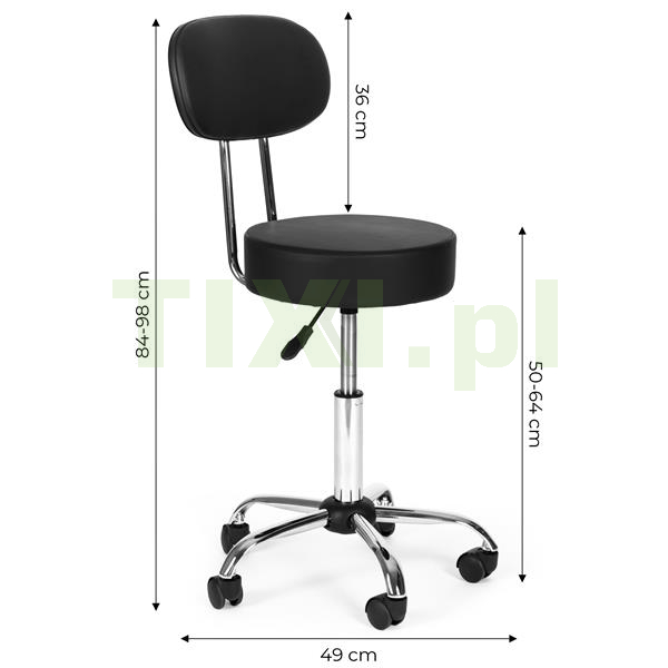 Stołek obrotowy z oparciem marki ModernHome to praktyczny i niezawodny mebel, który doskonale sprawdza się w codziennej pracy kosmetyczek, fryzjerów, masażystów oraz tatuatorów. Wszystko dzięki swojej funkcjonalności i zaletom jakie oferuje: