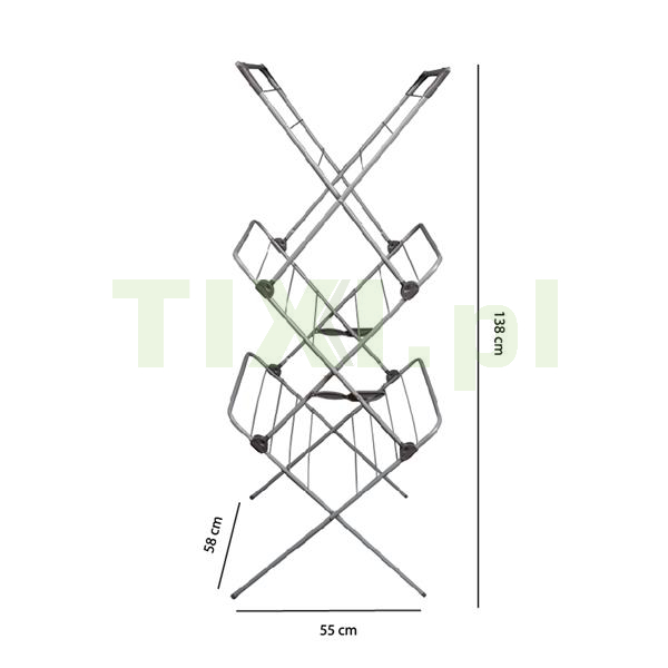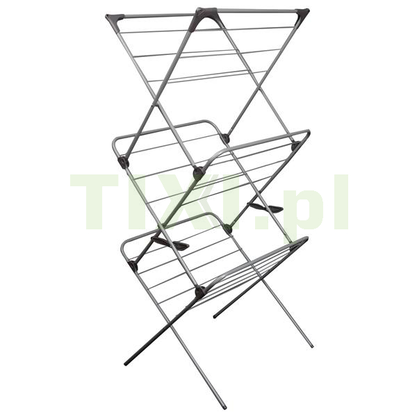 Suszarka pionowa jest idealnym rozwiązaniem dla osób, które pragną zaoszczędzić trochę miejsca w domu. Można zawiesić na niej około 15 metrów prania, dzięki 3 poziomom konstrukcji. Suszarka posiada także blokady przed samoistnym złożeniem, a jej zawiasy zabezpieczone są metalowymi nitami.