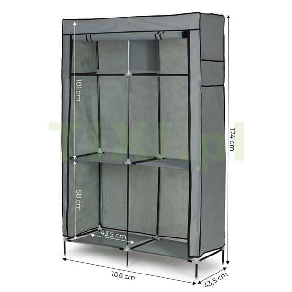 Szafa tekstylna to idealne rozwiązanie dla tych, którzy poszukują wygodnego i funkcjonalnego sposobu na przechowywanie ubrań, akcesoriów oraz butów. Ten mebel zapewnia odpowiednią ilość miejsca, jednocześnie pozostając stylowym dodatkiem do Twojej sypialni, garderoby, łazienki lub przedpokoju.