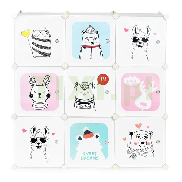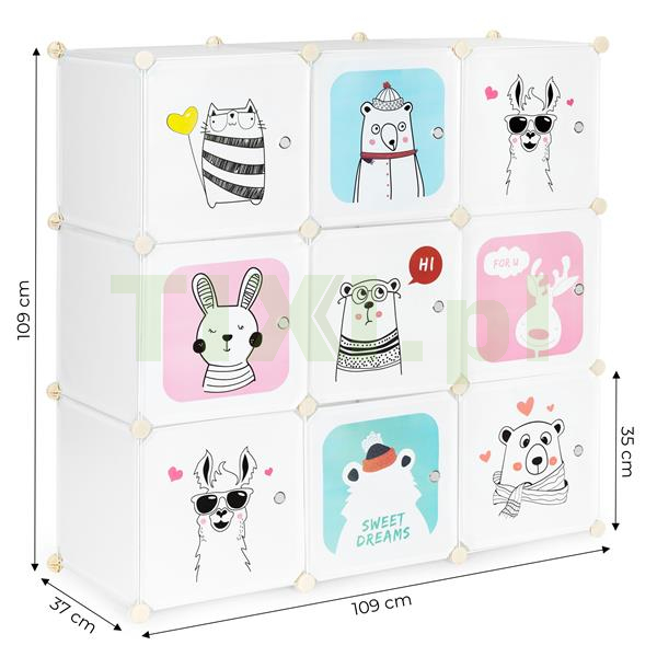 Każda z 9 półek może pomieścić do 3 kg obciążenia, co oznacza, że bez trudu zmieszczą się na nich książeczki, pluszowi przyjaciele czy klocki. Łatwy dostęp do przechowywanych rzeczy sprawia, że dzieci mogą samodzielnie zadbać o porządek.