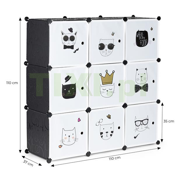 Każda z 9 półek może pomieścić do 3 kg obciążenia, co oznacza, że bez trudu zmieszczą się na nich książeczki, pluszowi przyjaciele czy klocki. Łatwy dostęp do przechowywanych rzeczy sprawia, że dzieci mogą samodzielnie zadbać o porządek.