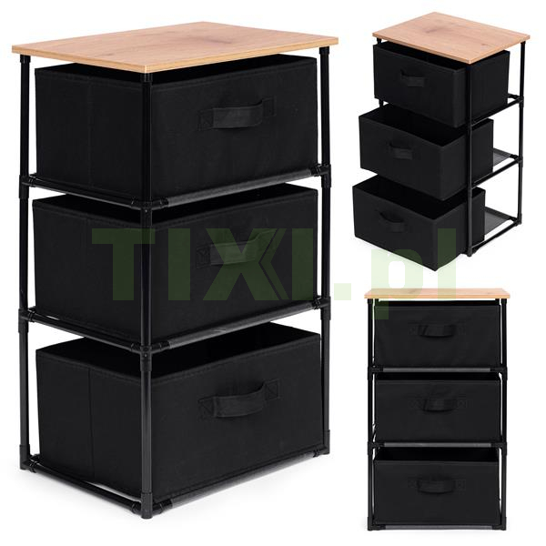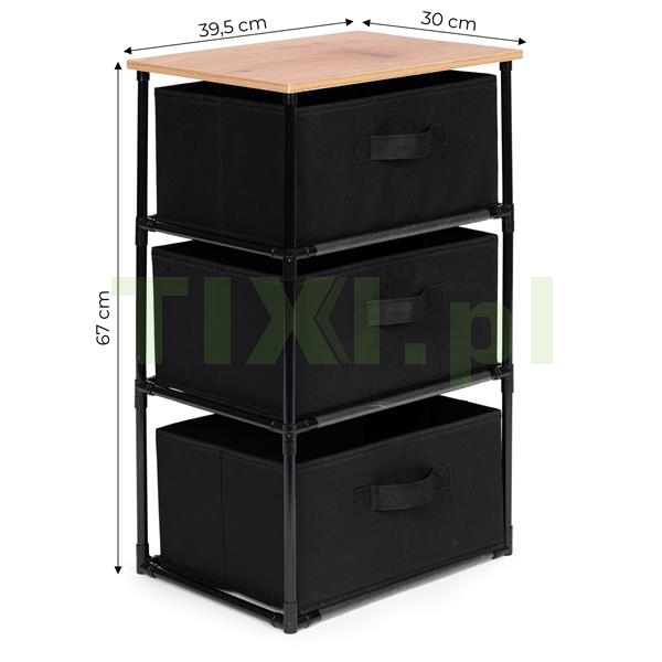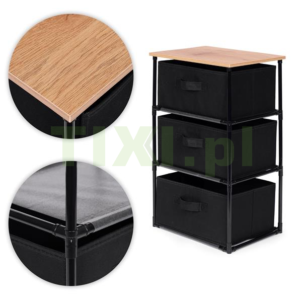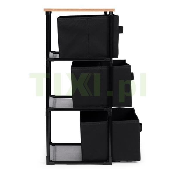 Szafka posiada 3 wyjmowane kosze, które wykonano z trwałego materiału odpornego na uszkodzenia, dzięki czemu można w nich przechowywać różnorodne rzeczy, od ubrań i akcesoriów po książki czy też zabawki. Wygodne uchwyty ułatwią wysuwanie koszy, co zwiększy komfort użytkowania.