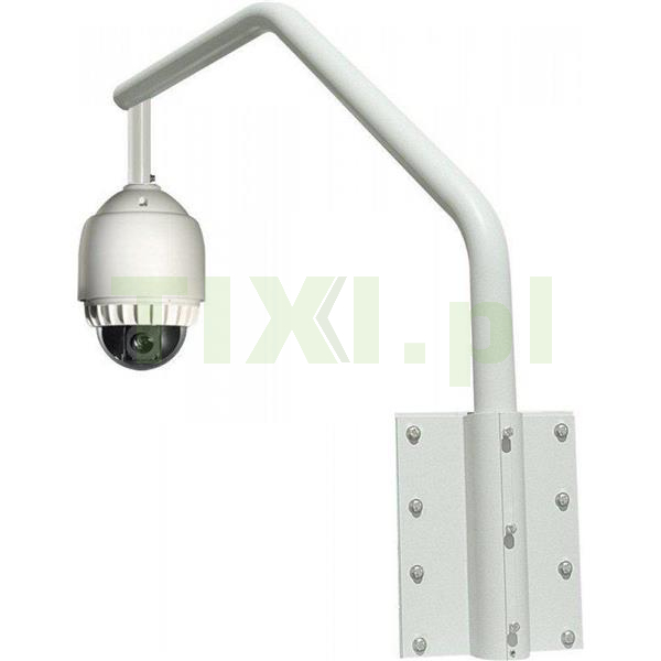 Uchwyt narożny Hikvision przeznaczony do instalacji kamer obrotowych w pozycji wysuniętej poza obrys budynku.
