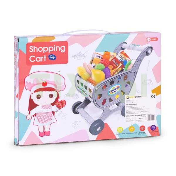 Zestaw obejmuje autentycznie wyglądający wózek zakupowy z różnorodnymi produktami spożywczymi, który pomaga rozwijać zdolności motoryczne i organizacyjne. Maluchy mogą cieszyć się wieloma imitacjami prawdziwych produktów, od warzyw po słodycze, co sprawia, że nauka zakupów staje się fascynującym doświadczeniem.