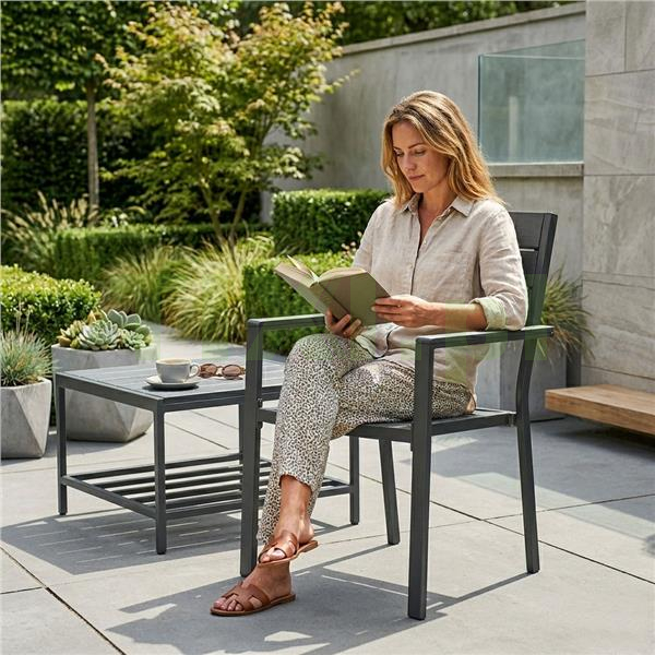 Zestaw dwóch krzeseł marki MultiGarden to propozycja dla osób, które lubią spędzać czas na świeżym powietrzu – spokojnie, wygodnie i bez pośpiechu. Świetnie odnajdą się na tarasie, balkonie czy w ogrodzie, tworząc przyjemne miejsce na poranną kawę, popołudniowy odpoczynek lub wieczorne rozmowy z bliskimi. Sprawdzają się zarówno podczas codziennego relaksu, jak i w trakcie spotkań w większym gronie, gdy potrzebne są dodatkowe miejsca do siedzenia. Ich uniwersalny charakter pozwala łatwo wkomponować je w różne aranżacje przestrzeni zewnętrznej, dzięki czemu całość pozostaje spójna i estetyczna.