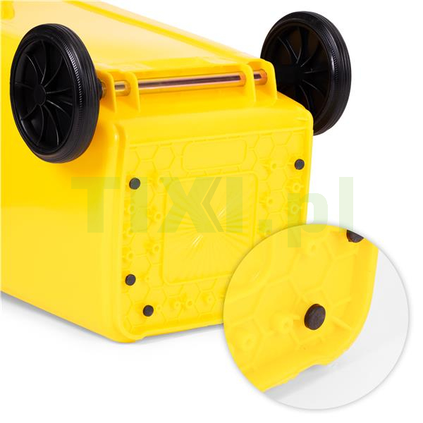 Pod koszem znajdują się specjalne stopki, które będą go stabilizowały, są szczególnie pomocne gdy kubeł ustawiony jest na śliskiej lub wilgotnej powierzchni. Antypoślizgowe elementy nie pozwolą na mimowolne przemieszczanie się pojemnika, a dodatkowo zminimalizują ryzyko zarysowań, które mogłyby powstać podczas przestawiania go.