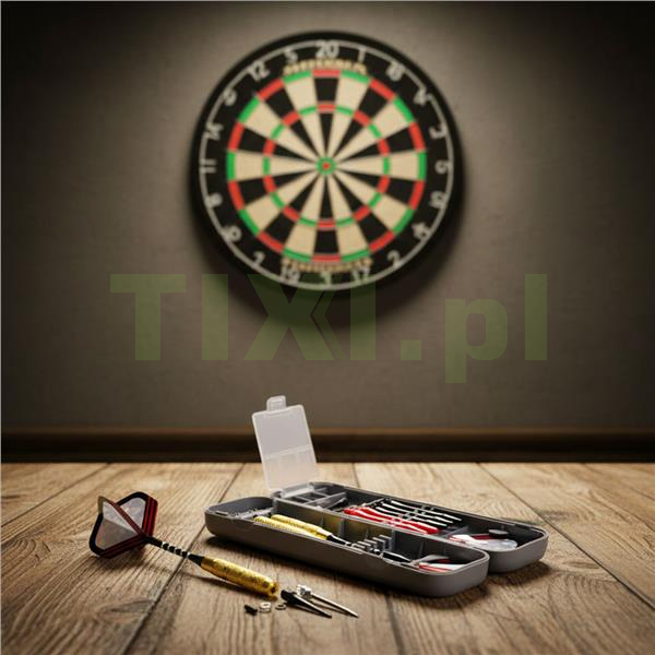 W komplecie znajdziesz wszystko, co potrzebne do komfortowej gry w darta – zarówno dla początkujących, jak i bardziej zaawansowanych graczy: